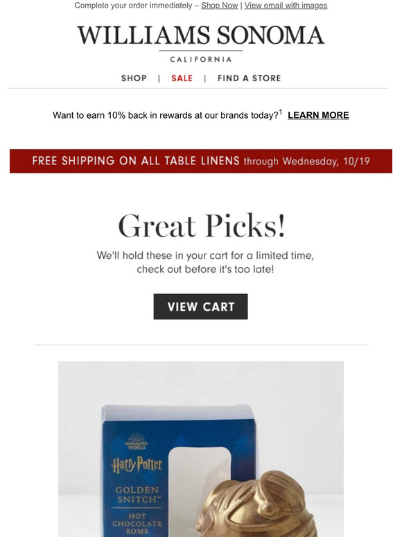 Williams Sonoma: Review your cart: complete your order ASAP Milled