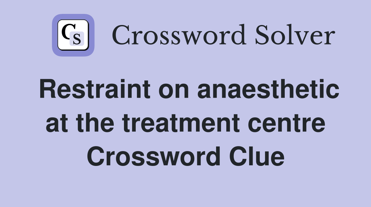 Restraint on anaesthetic at the treatment centre Crossword Clue