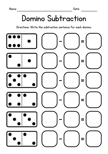 Domino Subtraction Worksheet by Mrs K Creations TPT