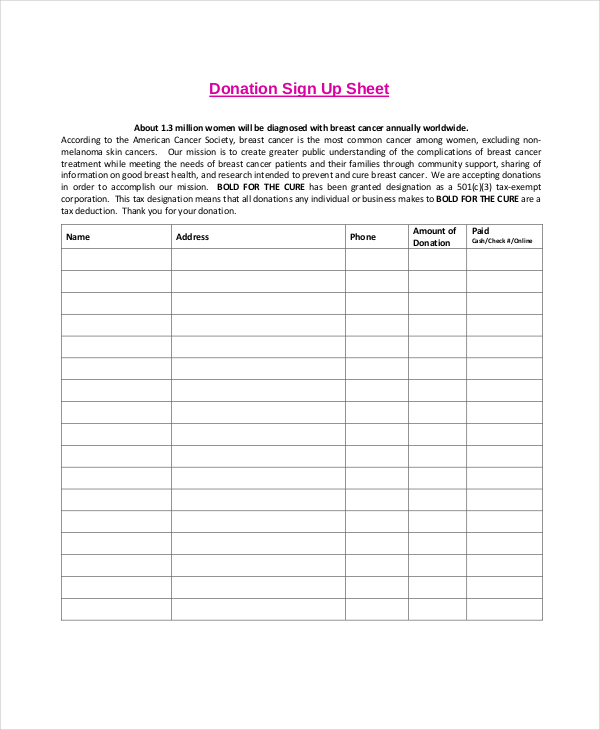Here are some of the images for Donation Sheet Template that we found in our website database.
