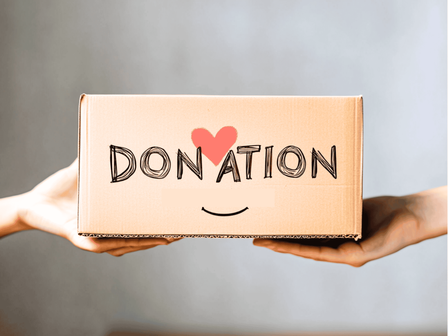 Hands Giving and Receiving a Donation Box Illustrating the Act of