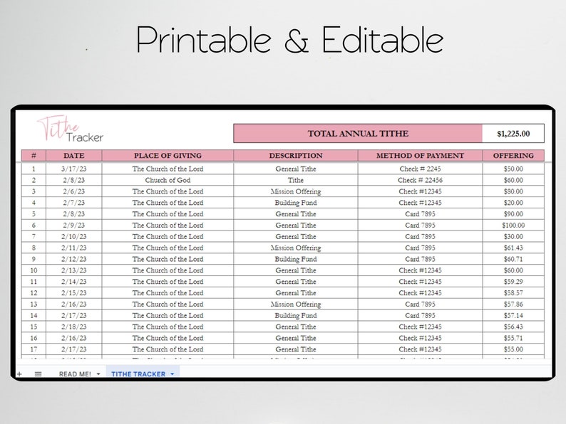 Tithe Tracker Excel Spreadsheet Tithes and Offerings Tracking Church