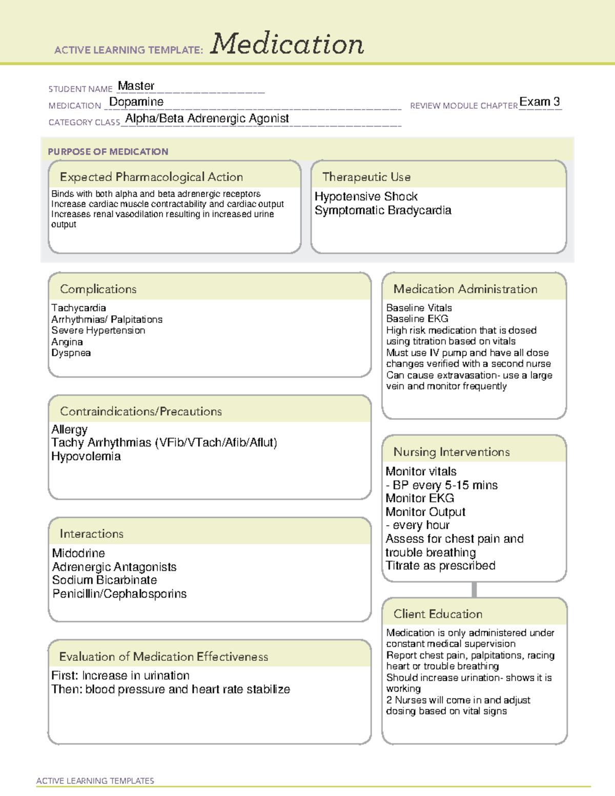 Dopamine Drug Card pdf ACTIVE LEARNING TEMPLATE: Medication
