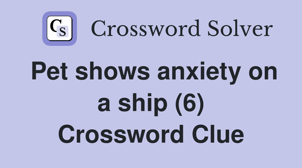 Pet shows anxiety on a ship (6) Crossword Clue Answers Crossword Solver