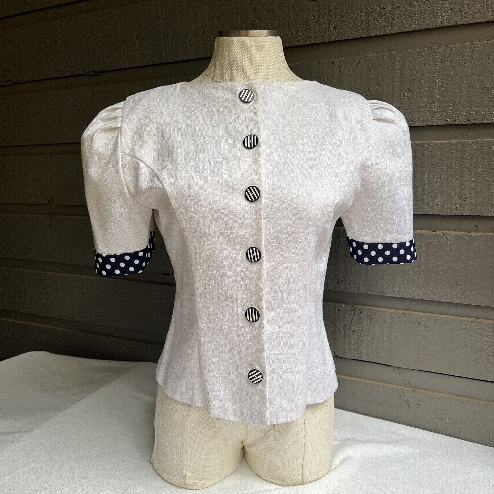 Vintage 80s White Rayon Polka Dot Nautical Jacket Blazer 11/12 By