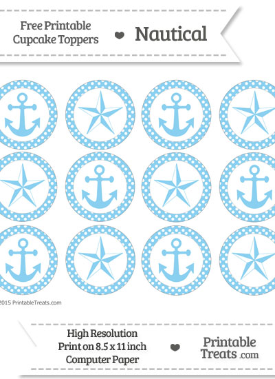 Free Baby Blue Polka Dot Nautical Cupcake Toppers Printable Treats com