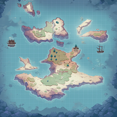 Imaginary nautical map with illustrated depiction of the coast Stock