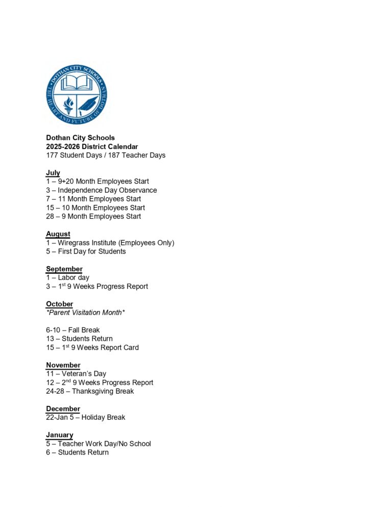 Dothan City Schools Releases 2025 2026 Academic Calendar Wiregrass