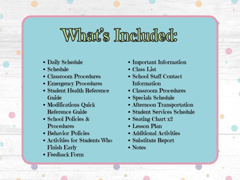Polka Dot Substitute Teacher Planner: Printable Binder Lesson Plans