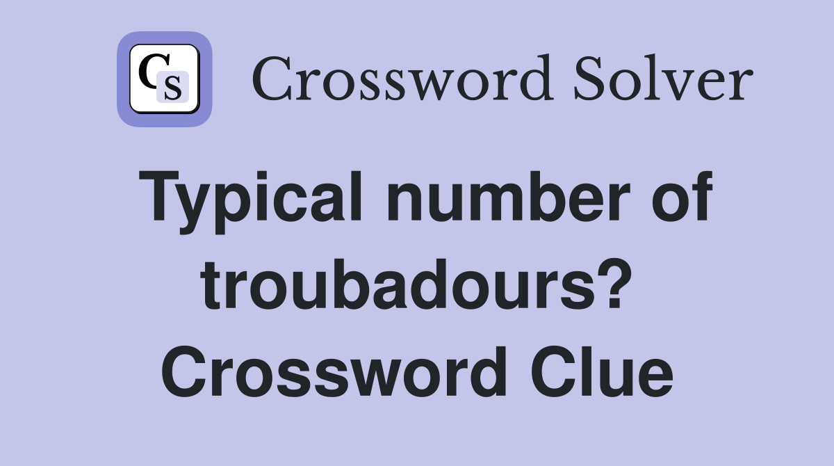 Typical number of troubadours? Crossword Clue Answers Crossword Solver