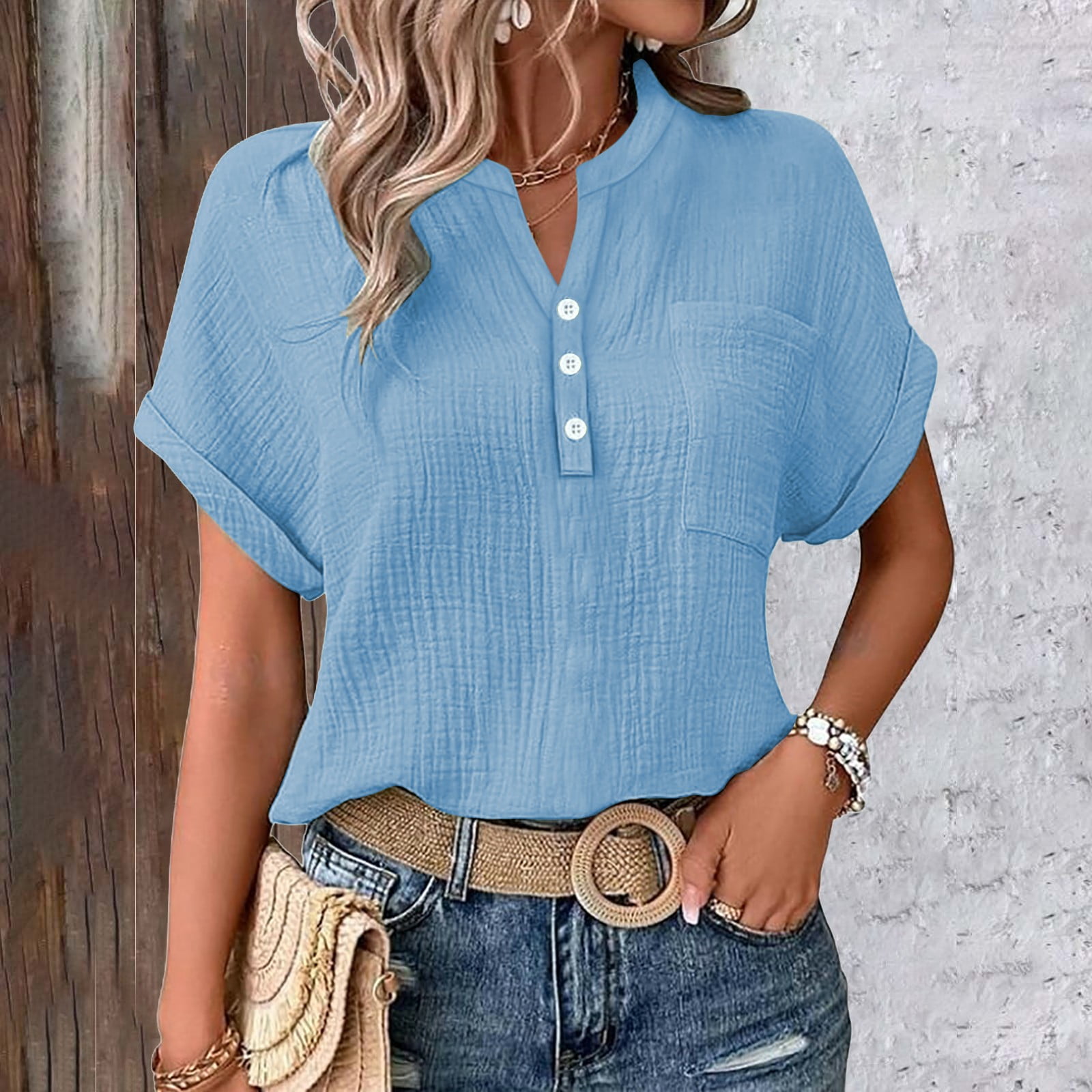 Batwing Sleeve Casual Work Tops Double Layer Wrinkled Fabric Pocket