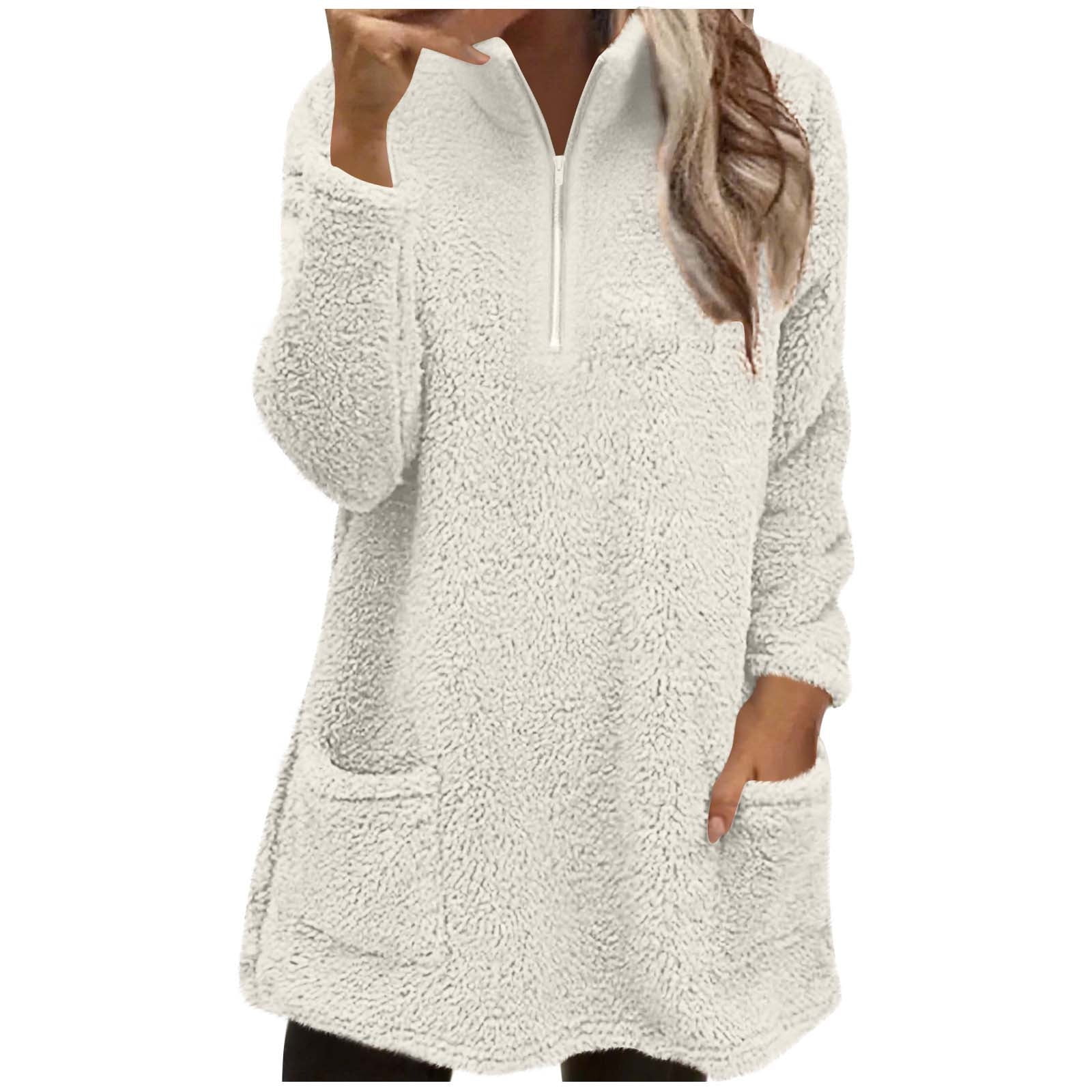 Double Fleece Half Zip Hoodie for Women Sherpa Lined Oversized Winter
