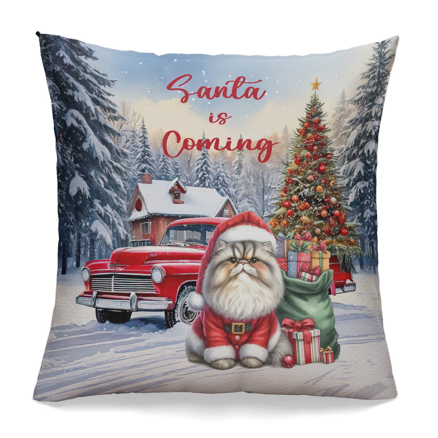 Santa is Coming Persian Merry Christmas Xmas Noel Truck Tree Pillowcase