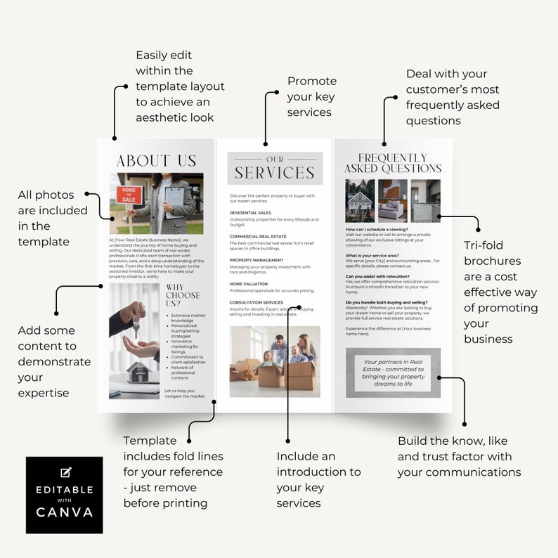 Real Estate Business Pamphlet Canva Template Editable Trifold