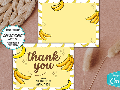 #014 Double Sided Thank You Card Banana Fruits Collection CANVA by
