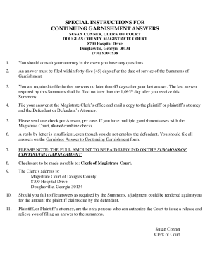 Fillable Online special instructions for continuing garnishment answers