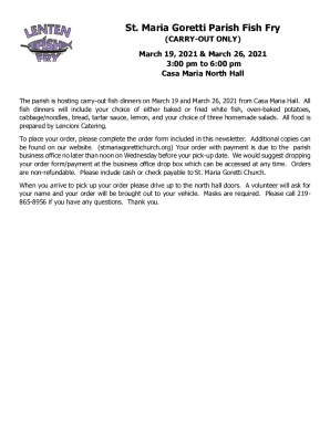 Fillable Online Friday Fish Fry Calendar Archdiocese of New Orleans