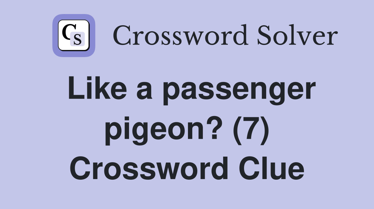 Like a passenger pigeon? (7) Crossword Clue Answers Crossword Solver
