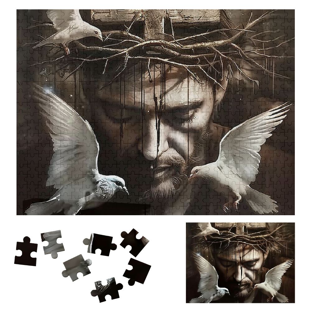 JEUXUS Crown of Thorns Doves Gothic Art Wooden Puzzle for Adults and