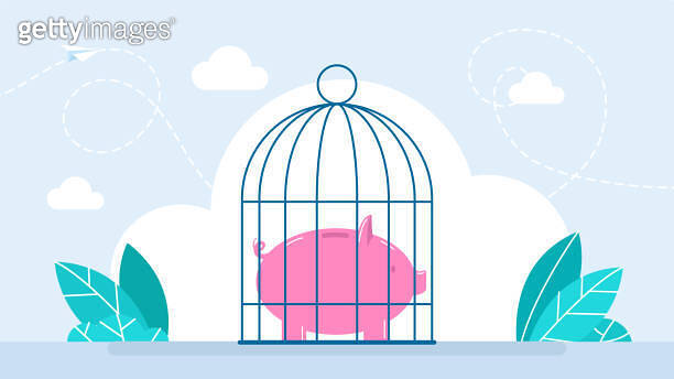 Piggy bank in a cage Wealthy piggy bank under bird cage strong