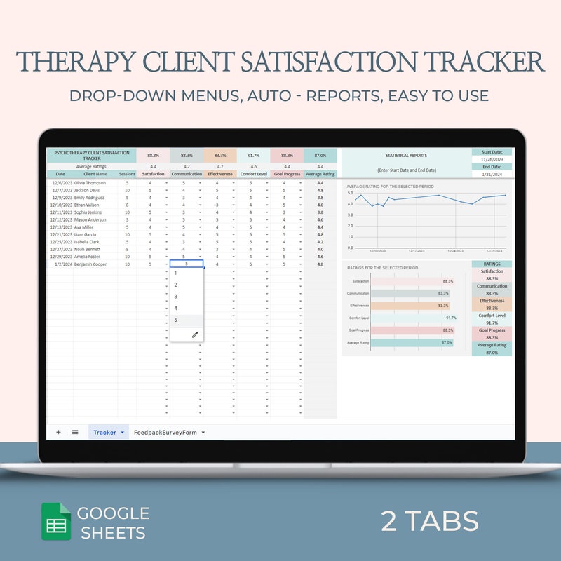Therapy and Counseling Invoice Template GOOGLE SHEETS Client Tracker