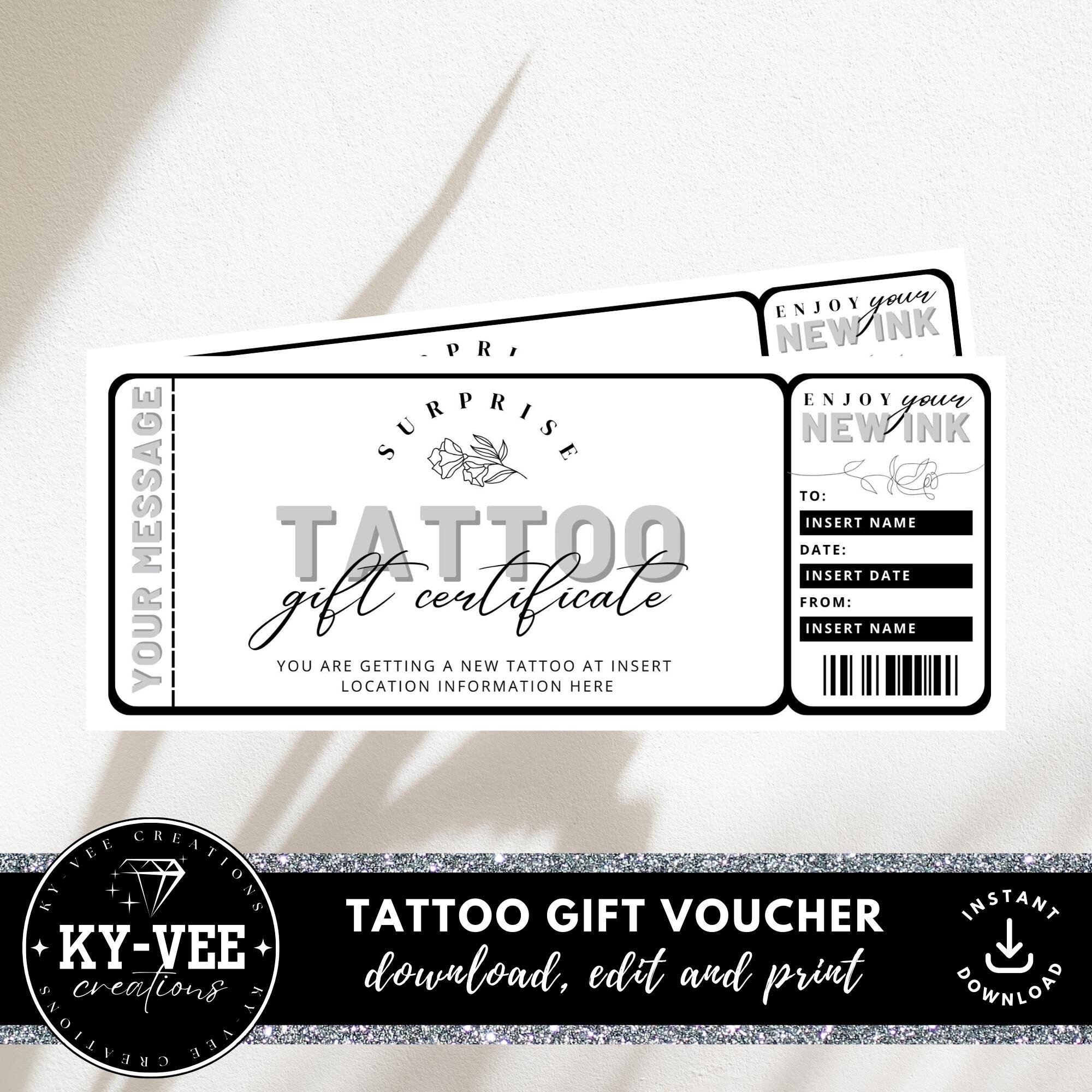 Tattoo Gift Card Ticket Certificate Voucher Template Get Etsy Gift