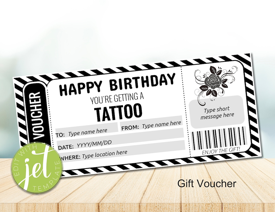 Tattoo Gift Voucher Template : Tattoo Voucher Birthday Gift Etsy