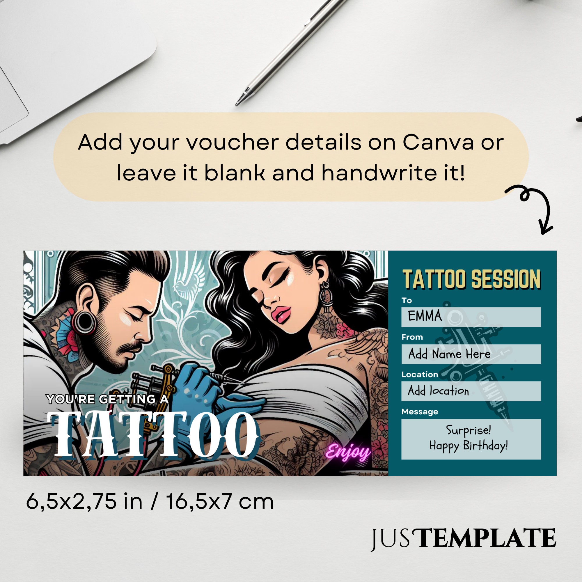 Tattoo Voucher Template Etsy