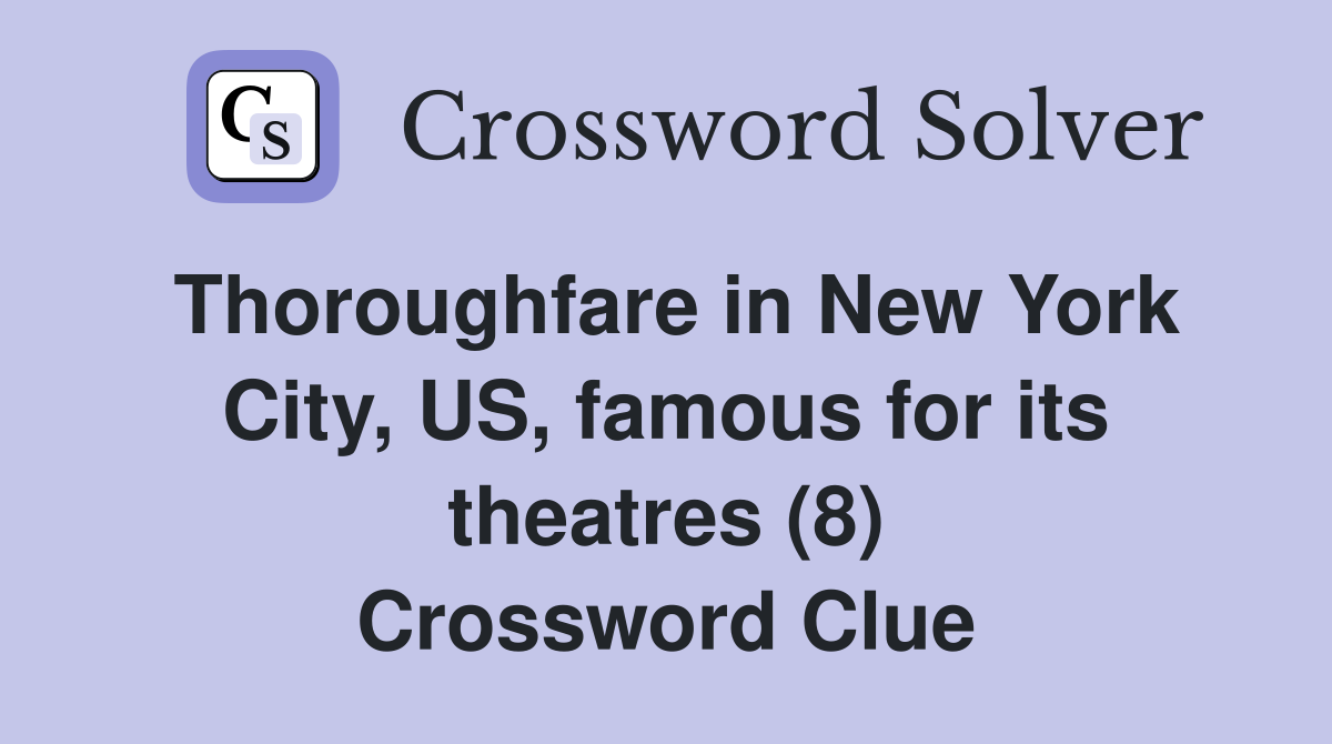 Urban thoroughfare Crossword Clue Answers Crossword Solver