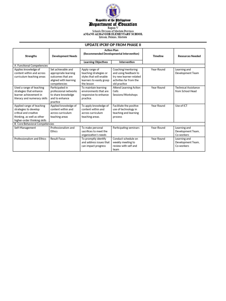 Updated IPCRF DP From Phase II PDF Learning Curriculum