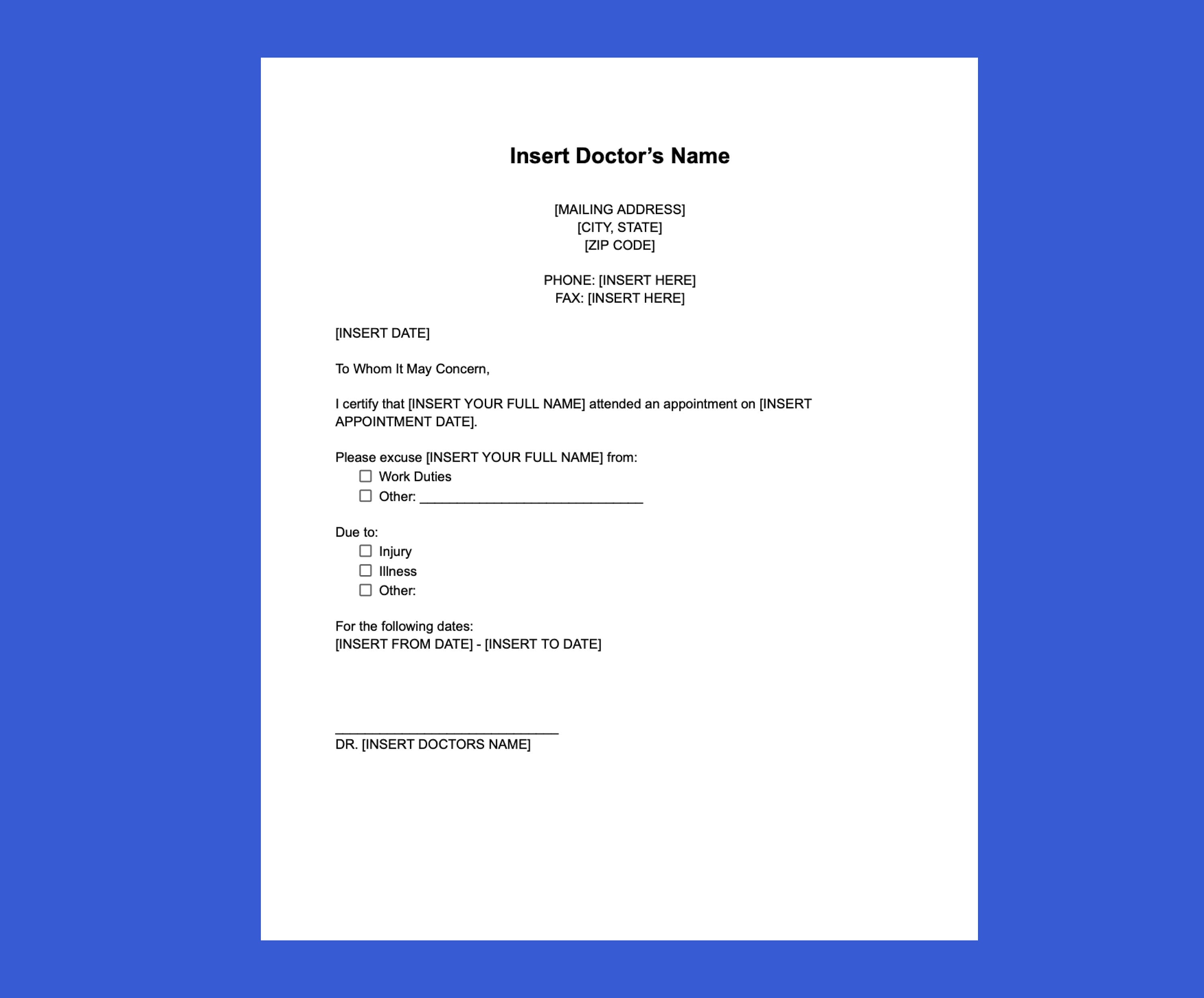 Doctor Excuse Template Doctor Excuse Letter Doctor Note for Work