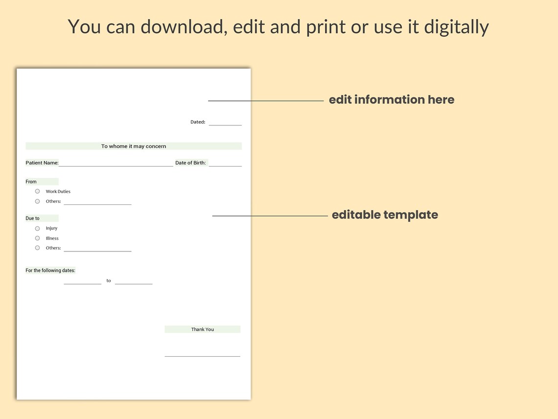 Editable Printable Doctors Excuse/absence Letter Etsy
