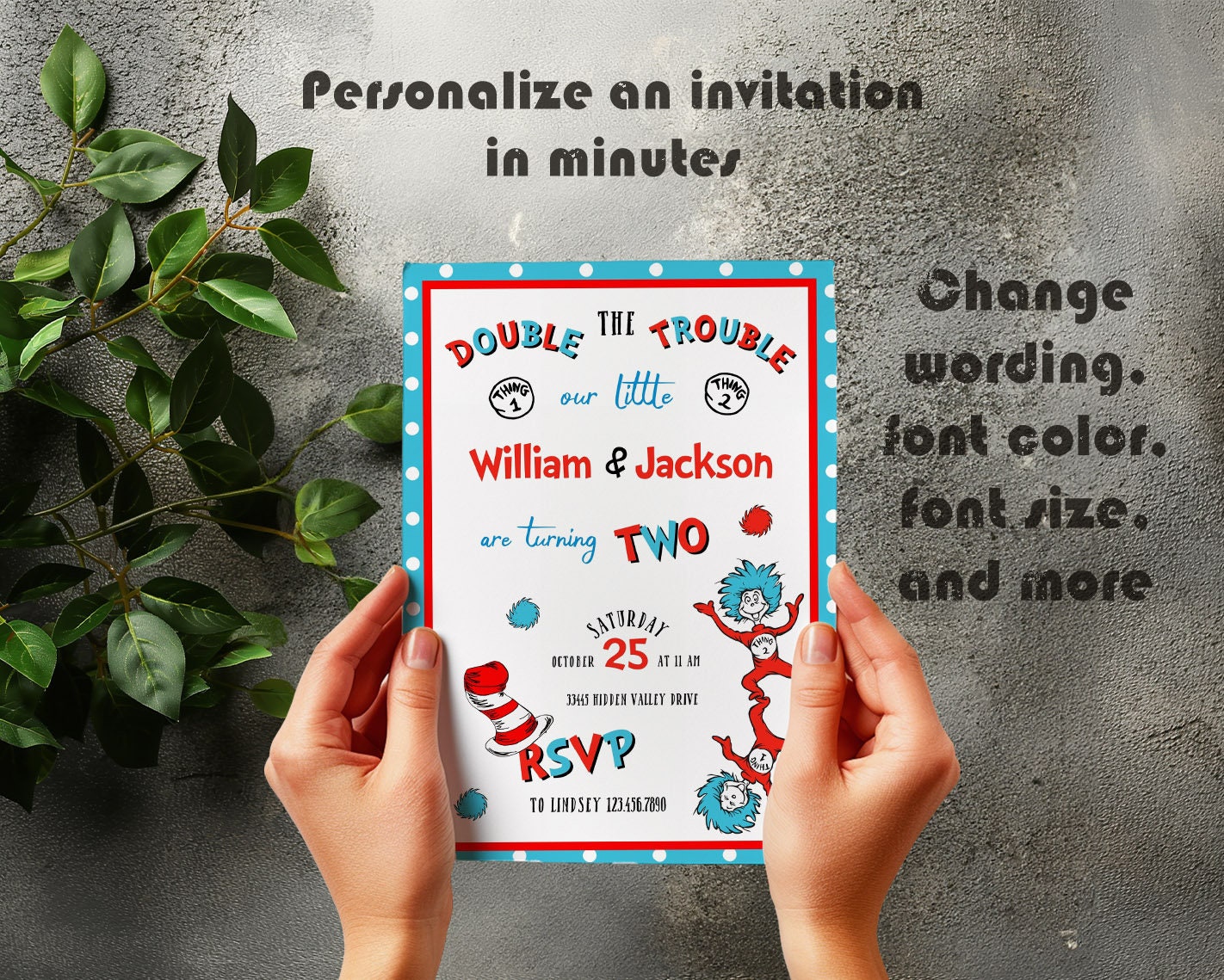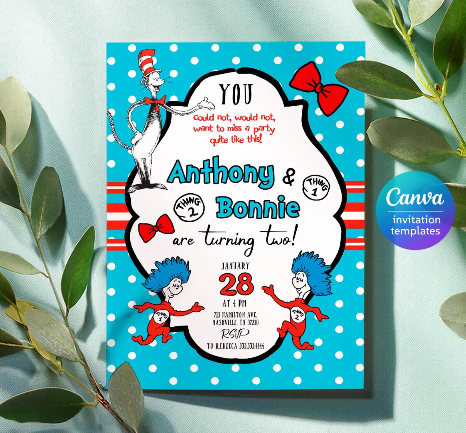 Dr Seuss Birthday Video Invitation Dr Seuss Thing 1 and Thing 2