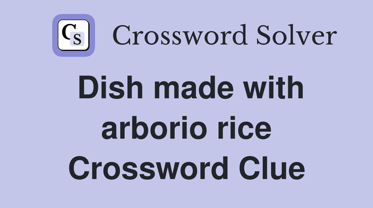 Dish made with arborio rice Crossword Clue Answers Crossword Solver