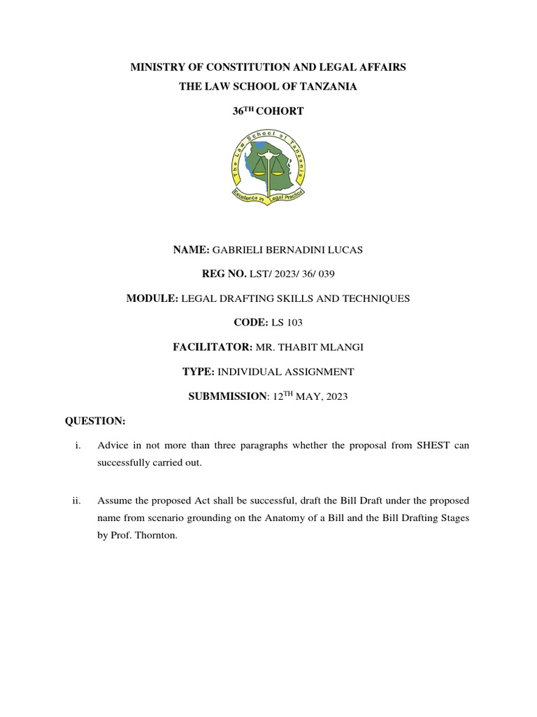 Gabrieli Legal Drafting Bill PDF Common Law Justice