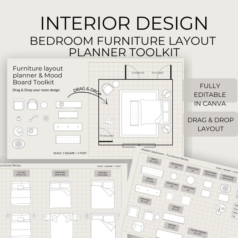 Bedroom Planner Template Canva Drag and Drop Furniture Layout Scale