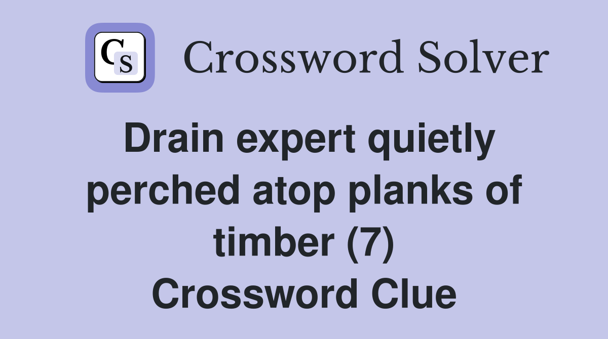 Drain expert quietly perched atop planks of timber (7) Crossword Clue