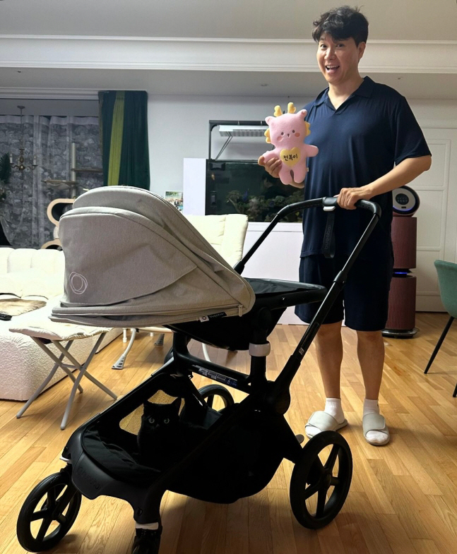 Baby Awaiting Park SooHong Stroller Certification Photo with Pet Cat