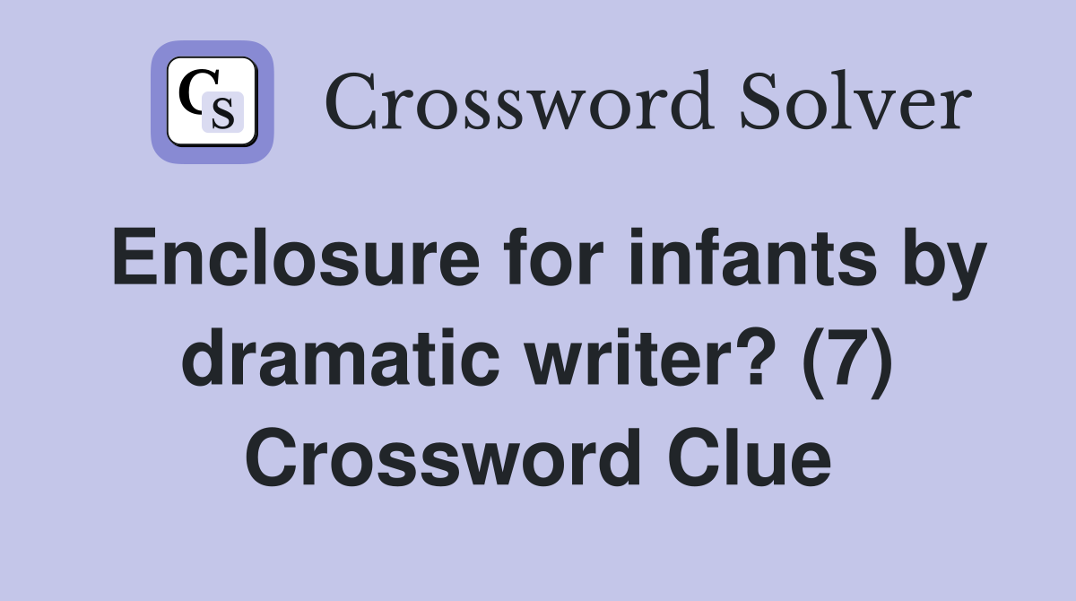 Enclosure for infants by dramatic writer? (7) Crossword Clue Answers