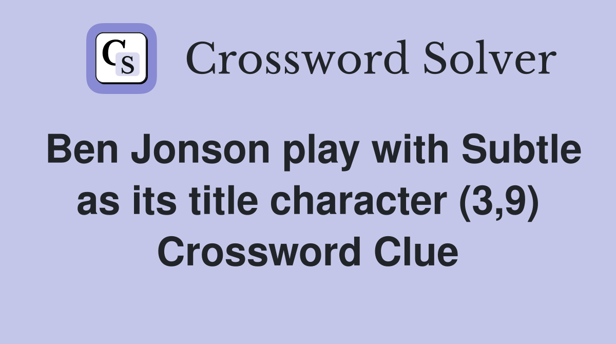 Ben Jonson play with Subtle as its title character (3 9) Crossword