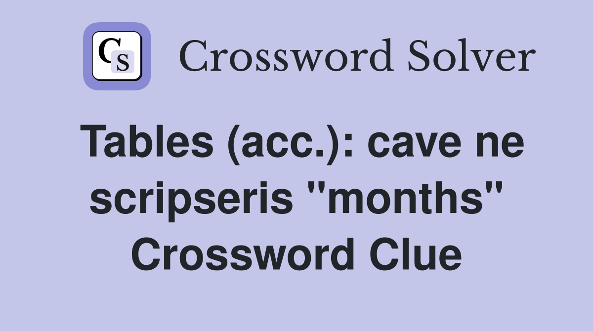 Tables (acc ): cave ne scripseris quot months quot Crossword Clue Answers
