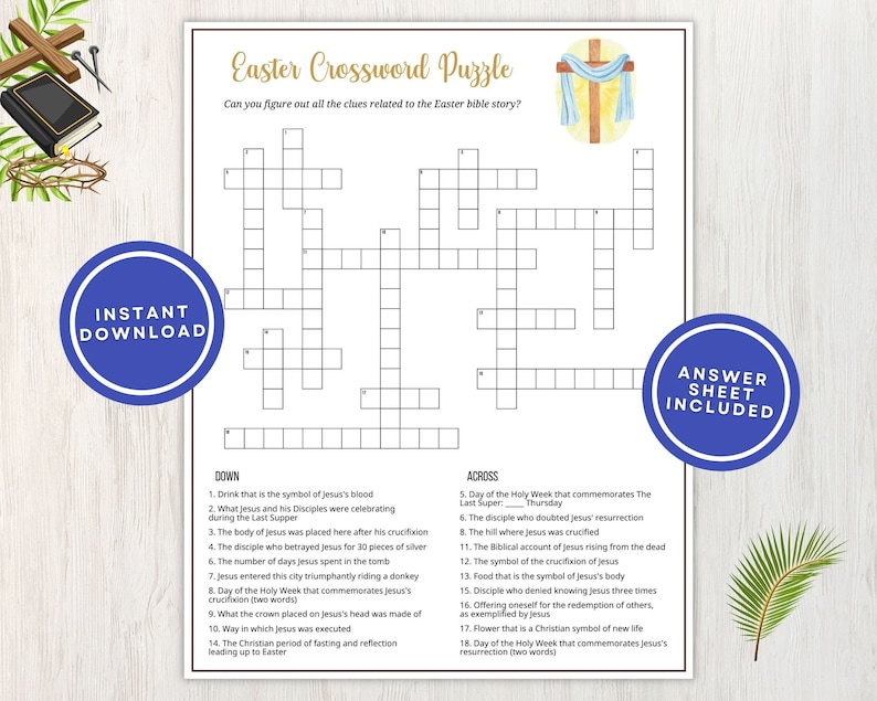 Christian Easter Crossword Puzzle for Adults and Kids Fun Printable