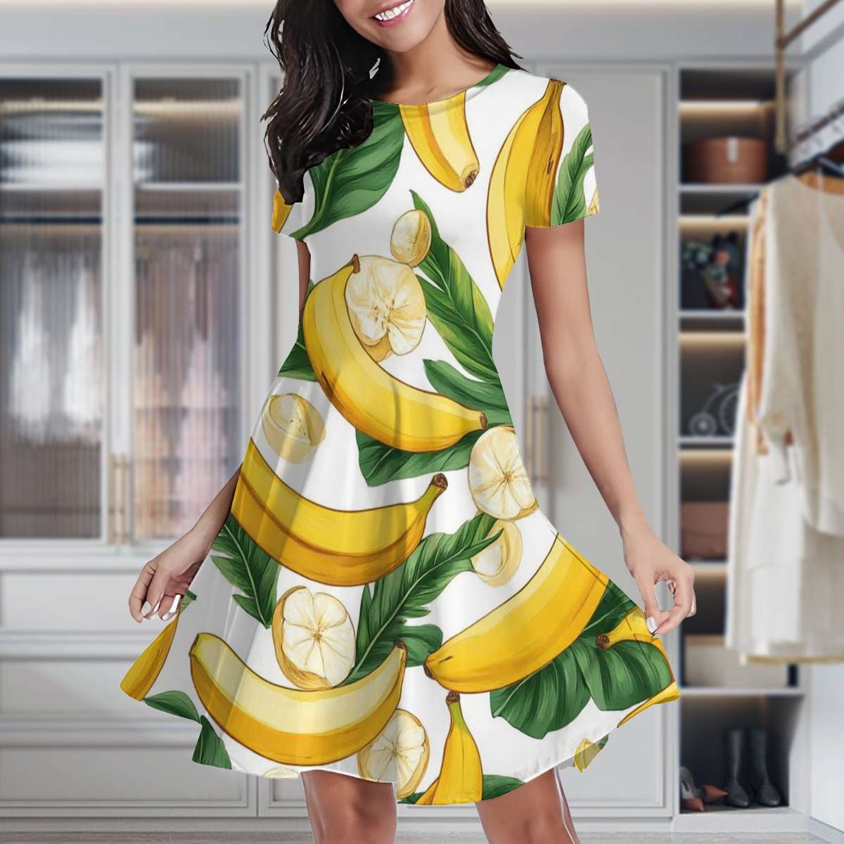 Banana Drawing Women #39 s Classic Swing Skater Dress Casual Work Party