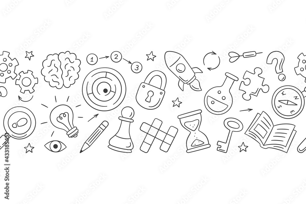Puzzle and riddles Hand drawn horizontal pattern with crossword puzzle