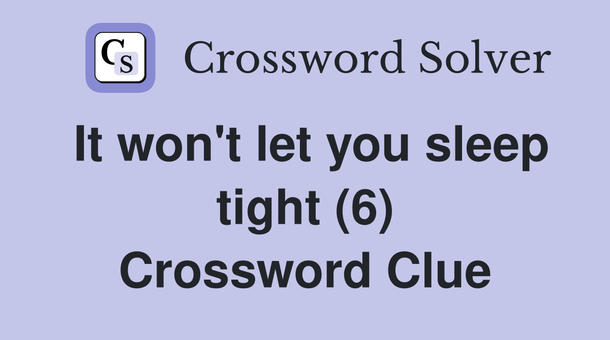 It won #39 t let you sleep tight (6) Crossword Clue Answers Crossword