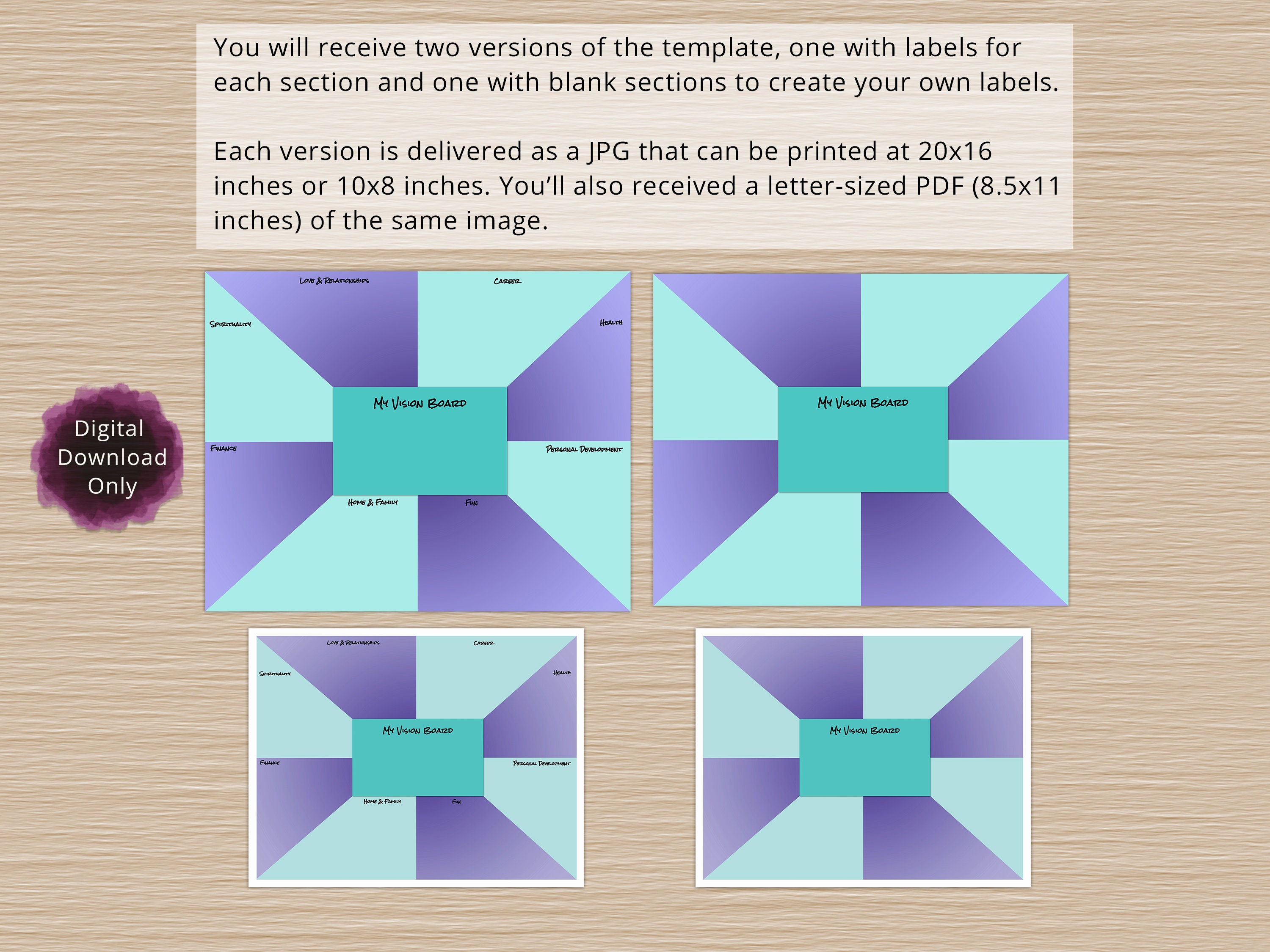 Vision Board Template Goal Board Dream Board Instant Download 300