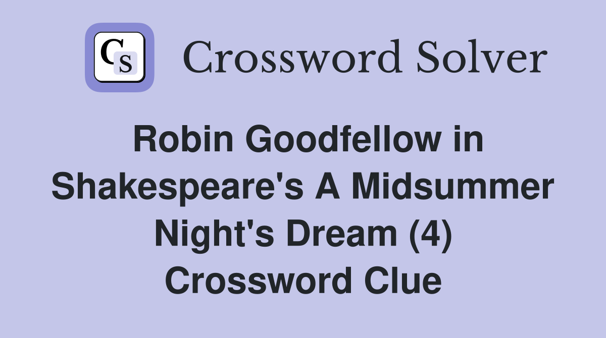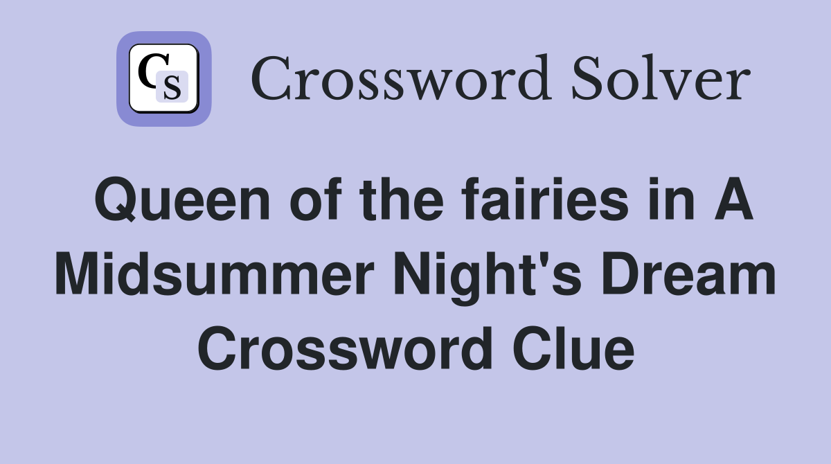 Queen of the fairies in A Midsummer Night #39 s Dream Crossword Clue