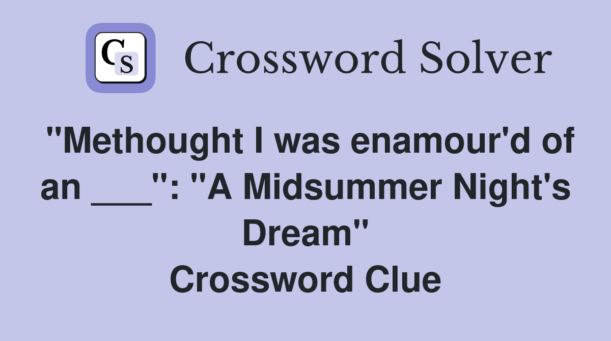 Role in quot A Midsummer Night #39 s Dream quot Crossword Clue Answers