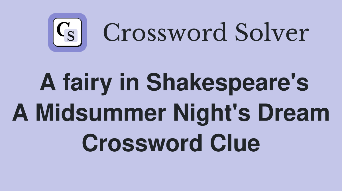 Fairy in #39 A Midsummer Night #39 s Dream #39 Crossword Clue Answers