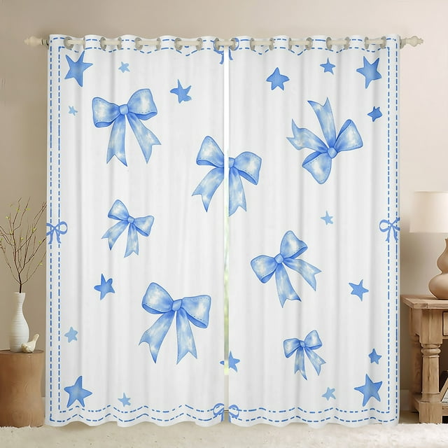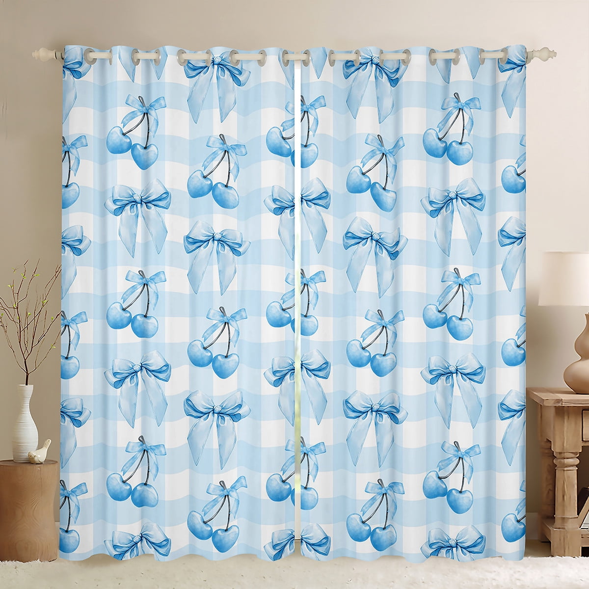 Feelyou Cute Blue Cherry Curtains and Drapes Dreamy Bow Knot Black Out